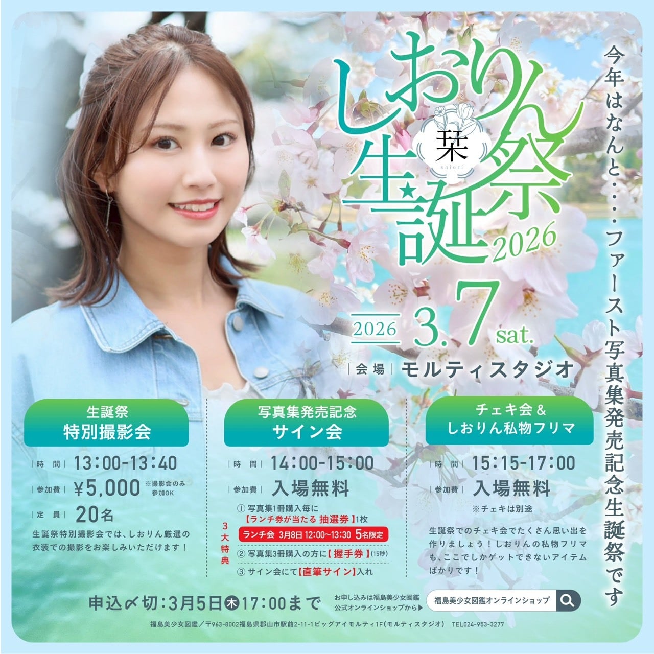 日時:2026年3月7日(土) 13:00〜13:40(撮影会は13:00〜)
